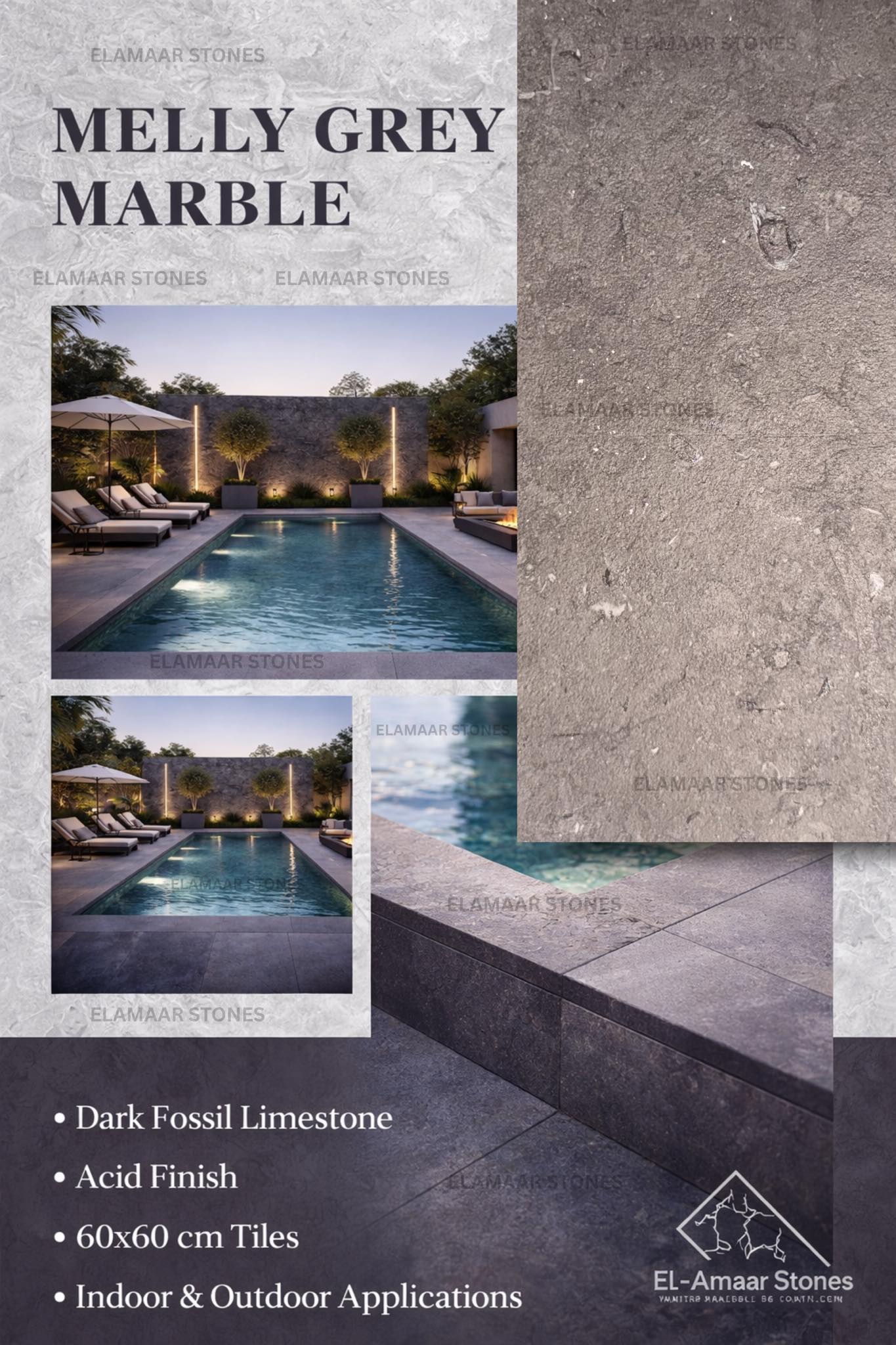 Melly Grey Marble – Natural Modern Beauty Looking for a clean, elegant look with natural character?Melly Grey Marble features rich grey tones and subtle fossil textures that add depth and style to any space. With its acid finish, it’s both beautiful and practical — perfect for indoor and outdoor use. Natural grey shades Textured acid finish Durable & weather-resistant […]